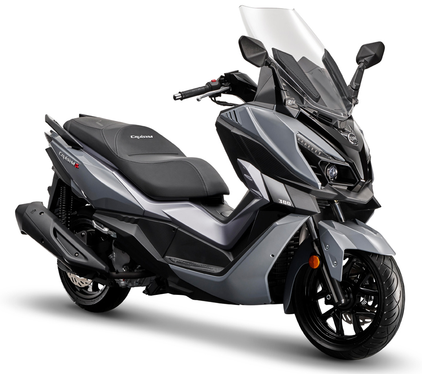 Το Cruisym α 300, με σύγχρονη εμφάνιση, διατηρεί τις αιχμηρές γωνίες με την προσθήκη carbon look επιφανειών τονίζοντας τον sport-urban χαρακτήρα του. Το σύστημα φώτων είναι πλέον Full LED τεχνολογίας, με το εμπρόσθιο φωτιστικό σώμα να ανανεώνεται με τη χρήση γυμνών λαμπτήρων LED που τονίζουν τη χαρακτηριστική μάσκα του μοντέλου, βελτιώνοντας παράλληλα και την ορατότητα κατά τη νυχτερινή οδήγηση. Ο μοντέρνος σχεδιασμός του scooter ολοκληρώνεται με τη χρήση νέου ευανάγνωστου πολυλειτουργικού, πλήρως ψηφιακού, LCD πίνακα οργάνων που συγκεντρώνει όλες τις πληροφορίες που χρειάζεται ο αναβάτης.