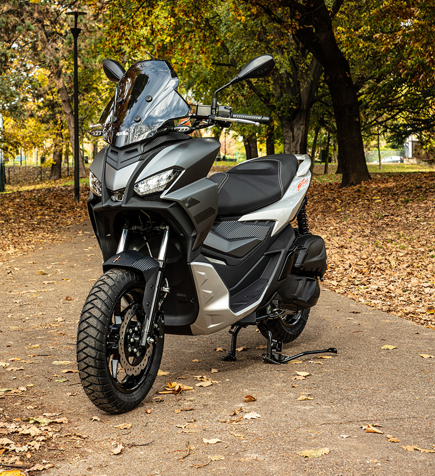 Το νέο Aprilia SR GT 125, είναι μία ολοκαίνουρια πρόταση στην κατηγορία των μικρών σκούτερ GT: είναι το πρώτο “urban adventure” σκούτερ της Aprilia. Σχεδιάστηκε για να κάνει διασκεδαστική κάθε μετακίνηση, εντός αλλά και εκτός πόλης, χάρη στον εξοπλισμό που αντλεί έμπνευση από τον κόσμο του enduro και κάνει το σκούτερ ιδανικό για όλες τις συνθήκες οδήγησης.