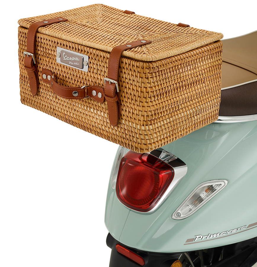 Τόσο το καλάθι όσο και η κουβέρτα, είναι διακοσμημένα με το λογότυπο Vespa Pic Nic, και μπορούν να μεταφερθούν άνετα στις εμπρός και πίσω σχάρες αποσκευών χρωμίου, που περιλαμβάνονται στον βασικό εξοπλισμό αυτής της ειδικής έκδοσης. Μάλιστα η κουβέρτα τυλίγεται χάρη στους δερμάτινους ιμάντες και μεταφέρεται εύκολα με μία πρακτική λαβή.