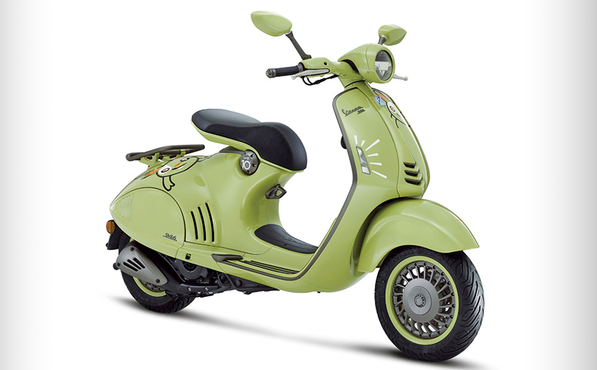 Δέκα χρόνια μετά τη γέννησή της, η Vespa 946 κάνει το ντεμπούτο της στην σπέσιαλ έκδοση 10° Anniversario, η οποία διατίθεται σε ένα αποκλειστικό χρώμα, που αποτελεί μια μοντέρνα εκδοχή του κλασικού πράσινου χρώματος της Vespa. Σύμφωνα με τον ρόλο της ως δημιουργός τάσεων, η Vespa 946 10° Anniversario έχει μια απαλή και βελούδινη απόχρωση, αλλά και μια νότα οξύτητας που την καθιστά εξαιρετικά πρωτότυπη. Δεν είναι τυχαίο ότι αυτή η απόχρωση εμφανίστηκε ως τάση στις συλλογές μόδας για την άνοιξη και το καλοκαίρι του 2023, στις Εβδομάδες Μόδας της Νέας Υόρκης, του Λονδίνου και του Μιλάνου. Το περλέ χρώμα φαίνεται σαν παστέλ με την πρώτη ματιά, αλλά στη συνέχεια αποκτά βάθος ανάλογα με τον φωτισμό του περιβάλλοντος.
