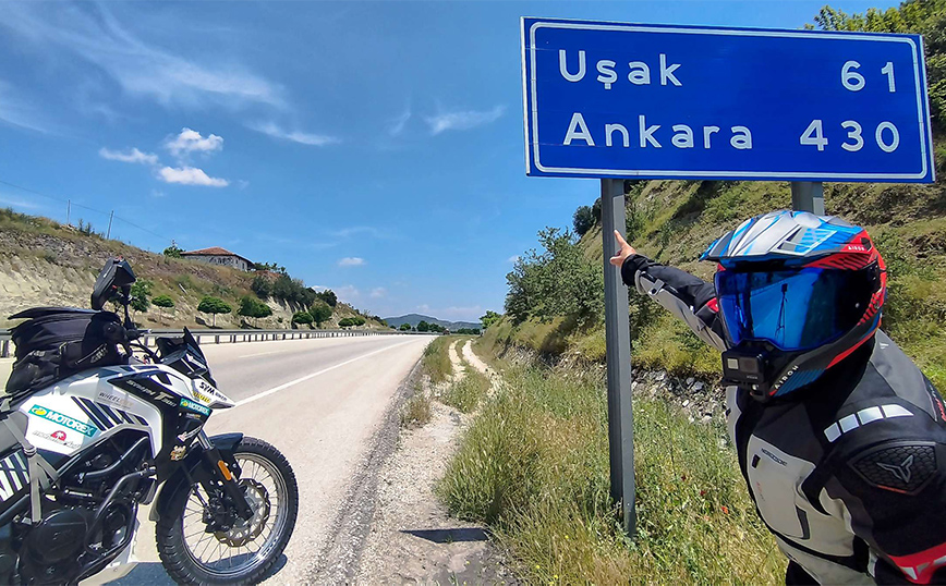 Το πέρασμα από την Ελλάδα προς την Ανατολή έγινε μέσω Τουρκίας και πιο συγκεκριμένα στο Τσεσμέ, μια συνοριακή πύλη που ο Μητσάκης έχει περάσει τόσες πολλές φορές, που πλέον τον γνωρίζουν με το μικρό του όνομα… Μετά από 1.600 χιλιόμετρα, το NH–T 300 άφησε πίσω του την Τουρκία πατώντας τις ρόδες του στη Γεωργία. Ακολουθώντας πιστά το χιλιομετρικό πλάνο που είχε καταστρώσει ο Μητσάκης, το μονοκύλινδρο της SYM οδηγούνταν για συνεχόμενα δωδεκάωρα στο δρόμο, με στάσεις μόνο για βενζίνη, φορτώνοντας αδιαμαρτύρητα χιλιόμετρα στο κοντέρ του, κι αυτή ήταν μόνο η αρχή!