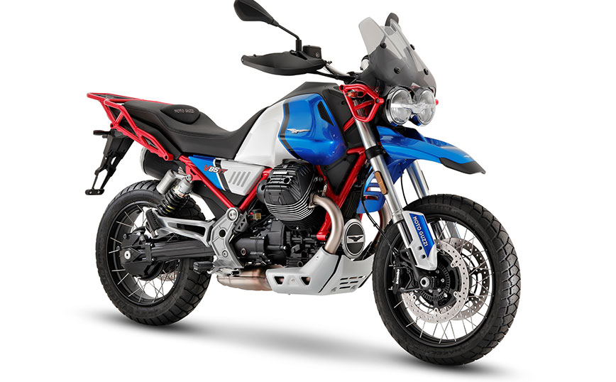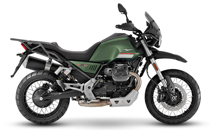 Η V85TT παρουσιάζεται σε τέσσερις εκδόσεις γραφικών, μαύρο “Nero Etna”, πράσινο “ Verde Altaj” και τις εντυπωσιακές διχρωμίες “Blu Uyuni” και “Giallo Mojave”. Η οικογένεια της classic enduro περιλαμβάνει επίσης τη V85TT Travel, που επεκτείνει περαιτέρω τις ταξιδιωτικές ικανότητες με πλούσιο εξοπλισμό, όπως ο ψηλός ανεμοθώρακας Touring, οι πλαϊνές βαλίτσες, το κεντρικό σταντ, τα θερμαινόμενα γκριπ αλλά και η πλατφόρμα πολυμέσων Moto Guzzi MIA. Τέλος η V85TT Guardia d’Onore είναι μια περιορισμένη και αριθμημένη έκδοση με αποκλειστική εμφάνιση και πλούσιο βασικό εξοπλισμό, που δημιουργήθηκε για να γιορτάσει τον ισχυρό δεσμό μεταξύ των Corazzieri, η διάσημη τιμητική φρουρά του Προέδρου της Ιταλίας, και των μοτοσυκλετών της μάρκας του Αετού από το Mandello.
