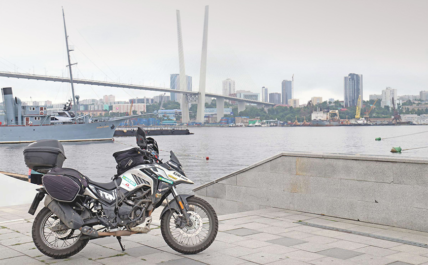 Μετά από 32 ημέρες και περίπου 14.000 χιλιόμετρα, ο Μητσάκης και η ΝΗ-Τ 300 σταμάτησαν στην εμβληματική πόλη-λιμάνι της Σιβηρίας, με συναισθήματα -που όπως αναφέρει και ο ίδιος- δύσκολα περιγράφονται με λόγια.