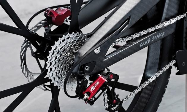 Τα χαρακτηριστικά led που συνοδεύουν τα Audi εμπεριέχονται επίσης στον σχεδιασμό του e-bike, στο εμπρός όσο και στο πίσω μέρος του. Για πιο extreme ακροβατικά tricks και stunts, η σέλα μπορεί να αλλάξει ύψος εύκολα, χαμηλώνοντας μέχρι και στο ύψος του πλαισίου. Με το πάτημα ενός κουμπιού, η σέλα σηκώνεται και πάλι για να φτάσει σε ύψος πιο βολικό για πορεία.