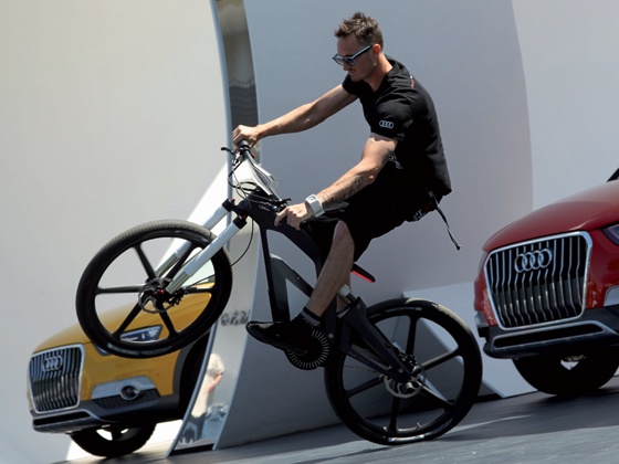 To e-bike της Audi στα χέρια του οδηγού trial Julien Dupont και του ποδηλάτη σπεσιαλίστα των downhill, Petra Bernhard δείχνει να καλύπτει τις απαιτήσεις και των δύο. Ένα ποδήλατο υψηλών επιδόσεων για χρήση sport αλλά και trick cycling, έχει τα γονίδια της Audi σε θέματα τεχνολογίας, σχεδιασμού και απόδοσης.