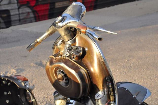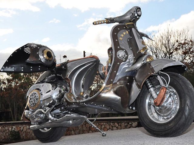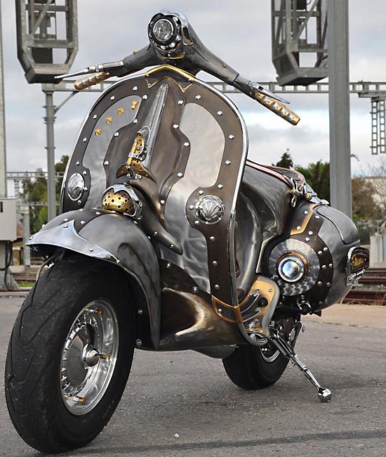 Προϊόν γόνιμης φαντασίας αλλά απόλυτα πραγματικά και σύγχρονη είναι η εντυπωσιακά μεταλλαγμένη βέσπα που παρουσιάζουμε, παρότι εύκολα θα πρωταγωνιστούσε στα έργα των πατέρων της επιστημονικής φαντασίας.