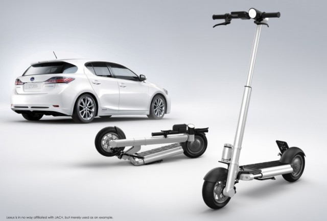Για ασφάλτινη αυστηρά χρήση προορίζεται το δεύτερο προϊόν των Ολλανδών, με το παράξενο όνομα JAC<. Πρόκειται για ένα ηλεκτρικό πατίνι που φιλοδοξεί να λύσει το πρόβλημα του «τελευταίου χιλιομέτρου». Πρόκειται για την απόσταση την οποία αναγκάζονται να περπατούν οι οδηγοί για να φτάσουν από το χώρο πάρκινγκ του αυτοκινήτου ως τη δουλειά τους.
