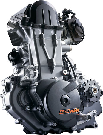 Το 390 διαφέρει αρκετά ως προς τον κινητήρα, παρότι μοιράζεται κι αυτός τη βασική αρχιτεκτονική των μικρότερων. Το μεγαλύτερο έμβολο επέβαλε μεγαλύτερα στρόφαλο, συμπλέκτη και κιβώτιο, προκειμένου να τα βγάζουν πέρα με την αυξημένη ροπή. Το έμβολο δεν είναι πλέον χυτό αλλά σφυρήλατο. Διαφορές υπάρχουν και στο πώς κατασκευάζεται ο κινητήρας. Μερικά από τα εξαρτήματά του είναι πολύ πιο ακριβά, γιατί λόγω της αυξημένης ιπποδύναμης χρησιμοποιούμε πιο προηγμένη τεχνολογία. Στις κυλινδροκεφαλές υπάρχουν τα ίδια ζύγωθρα, όμως οι βαλβίδες και τα ελατήριά τους διαφέρουν.