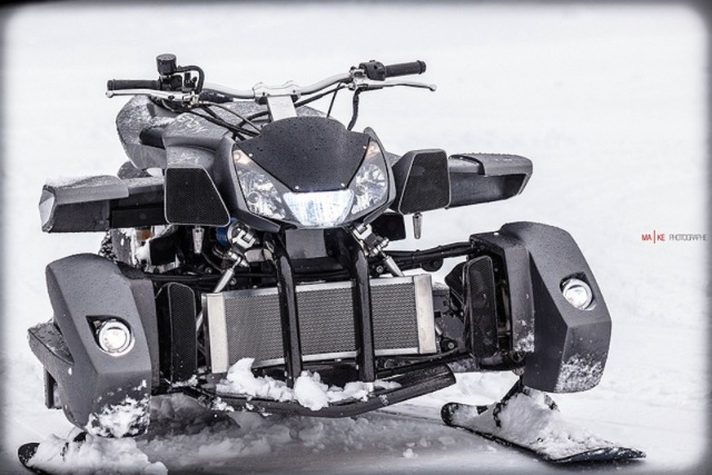Όπως βλέπετε στις φωτογραφίες αλλά και στο βίντεο που ακολουθεί, η μετατροπή επιτρέπει στο Triazuma Snow να κατεβάζει σε χιόνι αλλά και πάγο τους σχεδόν 200 ίππους του κινητήρα (υποθέτουμε ότι ο τετρακύλινδρος της Yamaha έχει δεχτεί σοβαρές βελτιώσεις και αυτός). Πράγμα που εγγυάται ατέλειωτες ώρες διασκέδασης χωρίς όρια, τις χειμωνιάτικες μέρες.