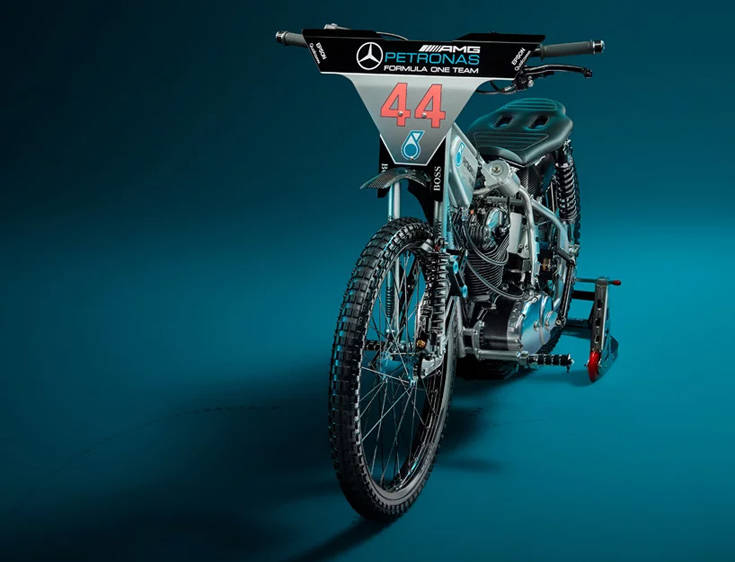 Μπόλικες ρετρό τροποποιήσεις και πολλή λεπτοδουλειά με το χέρι αργότερα, το μηχανάκι ήταν έτοιμο. Έλειπε όμως κάτι ακόμα, το paint job, το οποίο αποφάσισαν να αποδίδει τιμές στον αγαπημένο πιλότο της F1 του ιδρυτή της Wreckless, Rick Geall, τον ίδιο τον Λιούις Χάμιλτον! Γι’ αυτό και φόρεσε τα χρώματα και τα λογότυπα της μονοθέσιας Mercedes του.