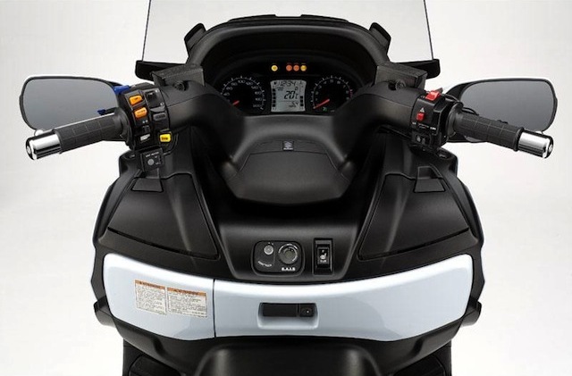 Το νέο κουστούμι και κυρίως η νέα εμπρός όψη φρεσκάρουν και χαρίζουν επιθετικότητα στο ανανεωμένο Burgman. Νέος είναι και ο πίνακας οργάνων όπου αναπαύονται δίπλα-δίπλα ένα ψηφιακό και ένα αναλογικό ταχύμετρο και στροφόμετρο αντίστοιχα. Στο προηγούμενο μοντέλο και τα δύο όργανα ήταν ψηφιακά.