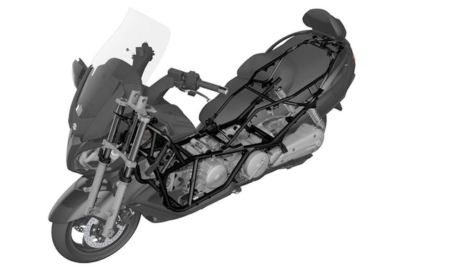 Αλλαγές έχει δεχθεί και το πλαίσιο, με πιο γρήγορη γωνία κάστερ, για βελτίωση της ευκινησίας στην πόλη. Πάνω στο νέο πλαίσιο έχουν προσαρμοστεί νέα πλαστικά τα οποία εκμοντερνίζουν την εμφάνιση του μεγάλου Burgman. Ήταν καιρός, καθώς το προηγούμενο μοντέλο έδειχνε πλέον συντηρητικό.