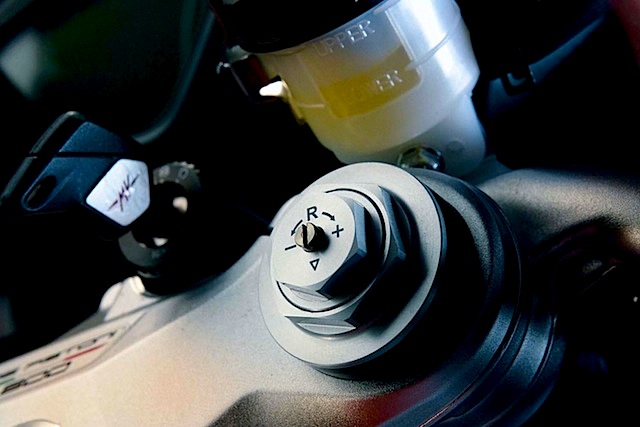Κι ακόμα υπάρχουν ηλεκτρονικά υποβοηθούμενο shifter EAS, μονόδρομος συμπλέκτης και φοβερά φρένα της Brembo με μονομπλόκ, ακτινικές δαγκάνες. Οι αναρτήσεις είναι πλήρως ρυθμιζόμενες, τόσο το πιρούνι της Marzocchi όσο και το αμορτισέρ της Sachs. Και το γκάζι είναι ηλεκτρονικό, μην ξεχνιόμαστε.
