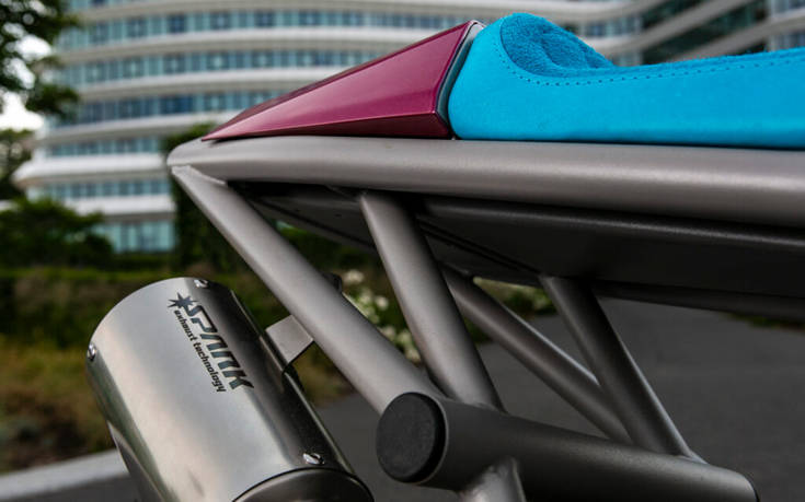 Ολοκαίνουριο ρεζερβουάρ, εξάτμιση και άλλα πράγματα που φτιάχτηκαν στο χέρι απαρτίζουν τη συνταγή της επιτυχίας, που μπλέκει τα έντονα μοβ και θαλασσί των αρχών της δεκαετίας του 1990 με σύγχρονες αισθητικές πινελιές.