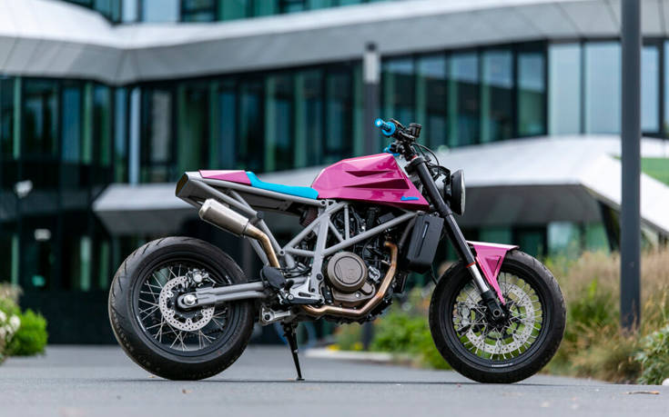 Αυτή τη φορά αποφάσισε να παίξει έχοντας την πλήρη ελευθερία. Ως καμβά χρησιμοποιήθηκε τώρα η ολοκαίνουρια Husqvarna 701, ένα ήδη εκπληκτικό μηχανάκι, όπως ομολογούν, αν και αυτό δεν τους σταμάτησε από το να το γδύσουν και να το ξαναφτιάξουν από την αρχή.
