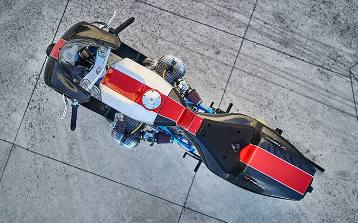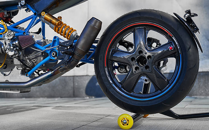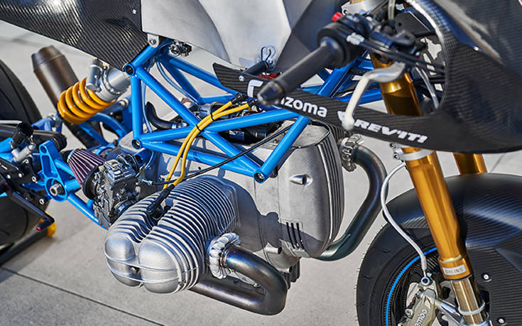 Από κει άντλησε λοιπόν έμπνευση ο Scott Kolb της custom σκηνής για την τελευταία του δουλειά: ένα πραγματικά πανάλαφρο και ντυμένο στο ανθρακόνημα αγωνιστικό μηχανάκι βασισμένο στην BMW R90/6 του 1976, έναν από τους θρύλους του Battle of the Twins.