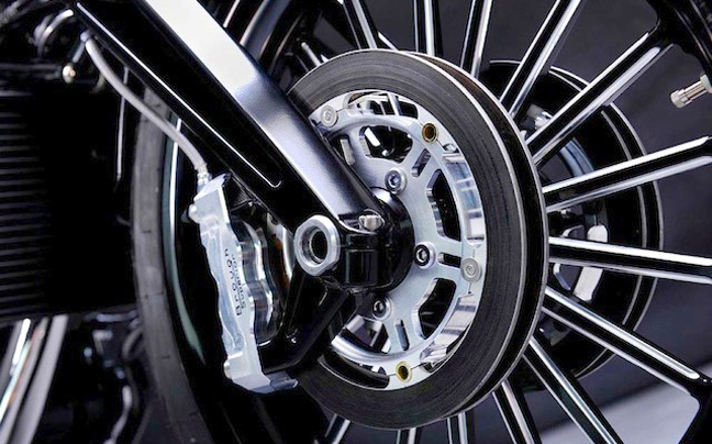 Η μικρή τους διάμετρος πάντως εξηγείται από το γεγονός ότι ως «δίδυμα» τα δισκόφρενα δημιουργούν την απαιτούμενη επιφάνεια τριβής που τώρα είναι μάλιστα μεγαλύτερη από ενός συμβατικού δίσκου 320 mm. Έτσι η διάστασή τους θυμίζει οπτικά εκείνη του ταμπούρου. Όπως και οι τροχοί με τα 18 μπράτσα παραπέμπουν σε ζάντα με ακτίνες.