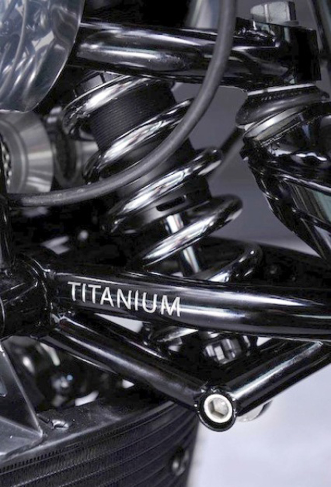 Ο κάτω βραχίονας του συστήματος είναι από μαγνήσιο, ενώ τα δύο ψαλίδια που περιέχουν και το αμορτισέρ στην περιοχή του λαιμού είναι από τιτάνιο. Βλέπουμε πως η νέα Brough μένει πιστή στις αρχές του πρώτου δημιουργού της: ο George Brough επέμενε να χρησιμοποιεί την πιο εξελιγμένη τεχνολογία και τα πλέον προηγμένα υλικά της εποχής του, για μια πανάκριβη μοτοσυκλέτα που δεν είχε το όμοιό της σε επιδόσεις.