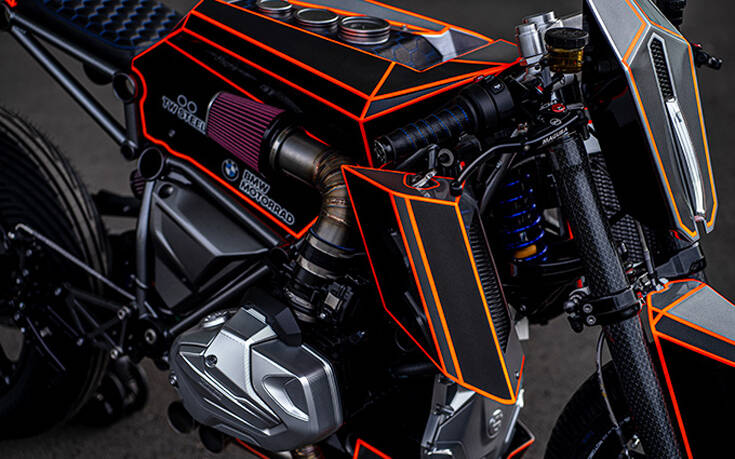 Η BMW R1250GS γδύθηκε από το εργοστασιακό της κοστούμι για να αποκτήσει νέο και μυώδες bodywork, αλλά και αυτή τη νέον γεωμετρική φόρμα που την κάνει σαν να έχει βγει από το σύμπαν του Tron.