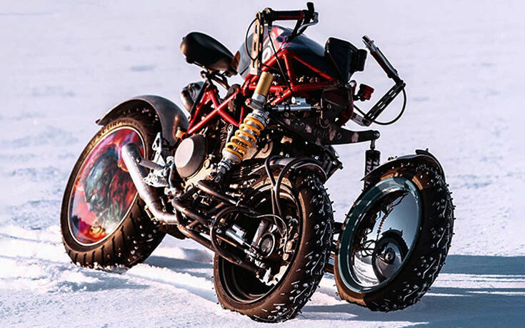 Είναι αναμφίβολα ένα παράξενο μηχανάκι, είναι όμως αγωνιστικό μηχανάκι ειδικού σκοπού. Και έχει να τα βάλει με τις αφιλόξενες συνθήκες της παγωμένης ρωσικής λίμνης…