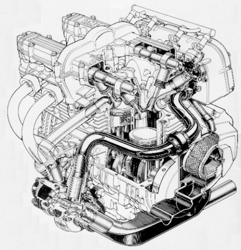 H σημαντικότερη διαφορά από τον πρώτο εκείνο τετρακύλινδρο του GPz 750 είναι ότι η τουρμπίνα τώρα είναι τοποθετημένη πίσω από το μπλοκ των κυλίνδρων, πάνω από τη γεννήτρια. Οι πολύπλοκες σωληνώσεις είναι πολύ πιο τακτοποιημένες και σχεδόν αόρατες, ο συνολικός όγκος μικρότερος και η συγκέντρωση μαζών σημαντικά καλύτερη.