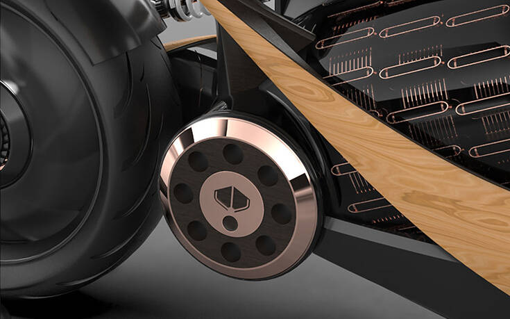 Μέσα στο σώμα της μηχανής κρύβεται η φουτουριστικής αισθητικής μπαταρία και το ηλεκτρικό μοτέρ, που δεν πάνε πίσω σε σχέση με την εκπληκτική εμφάνιση.