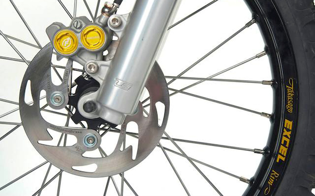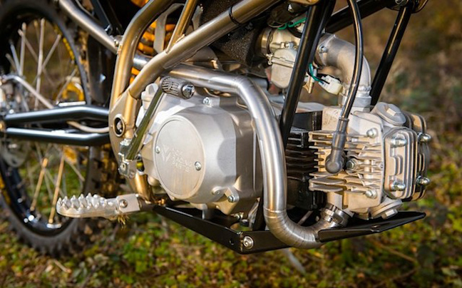 Η τελική έκδοση της Mountain Moto FX5 ζυγίζει λίγο παραπάνω από το πρωτότυπο, αλλά όχι πολύ: μόλις 2,5 κιλά. Επίτευγμα εντυπωσιακό αν σκεφτεί κανείς ότι δεν έχει τίποτα κοινό με το πρώτο εκείνο μοτοσυκλετάκι εκτός από το τιμόνι, ένα υπέροχο Truvativ downhill. Όλα τα υπόλοιπα περιφερειακά προέρχονται από μοντέλα trial, enduro ή και motocross!