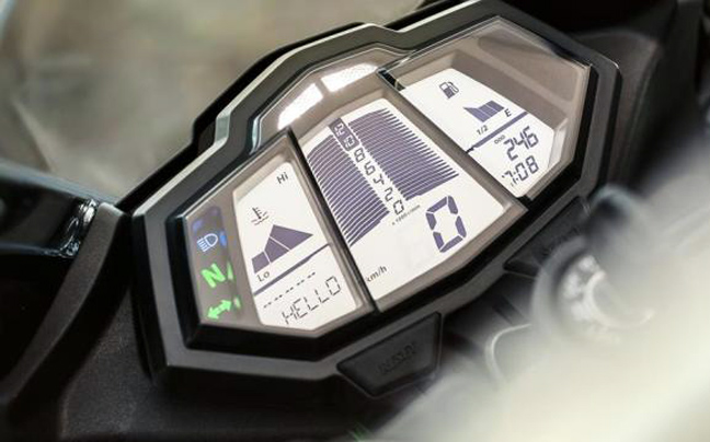 Ολοκαίνουργιος, υπερπλήρης και εντυπωσιακός για τόσο μικρή μοτοσυκλέτα είναι ο πίνακας οργάνων. Έχει καλούς τρόπους (λέει καλημέρα) και αποτελείται από μια οπισθοφωτιζόμενη οθόνη υγρών κρυστάλλων με ψηφιακό ταχύμετρο και στροφόμετρο.