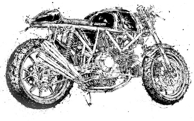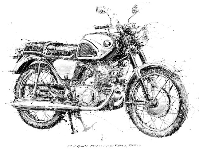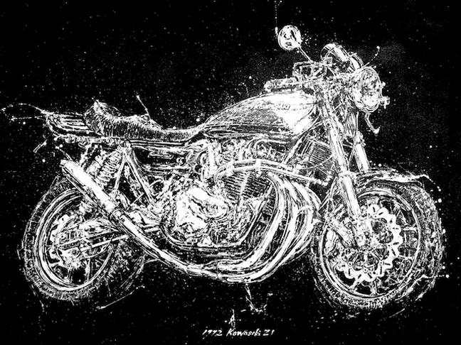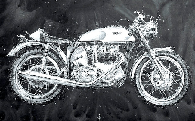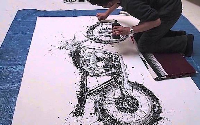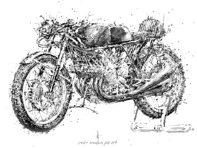 Κοιτάξετε για παράδειγμα αυτούς τους πίνακες του Ιάπωνα Endo Makoto. Μοιάζουν αντίγραφα έργων του Άγγλου καρτουνίστα Ralph Steadman -αν είχε τρέλα με τις μοτοσυκλέτες.