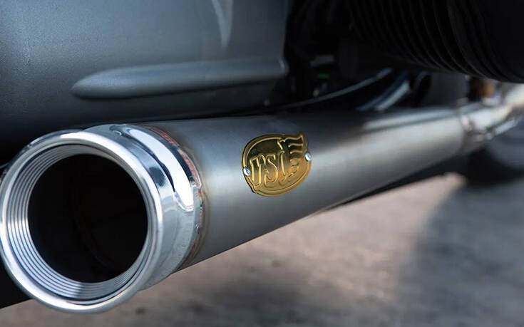 Εσωτερική δουλειά της RSD είναι και οι ζάντες, τυλιγμένες σε drag ελαστικά Dunlop, αλλά και το σύστημα εξάτμισης.