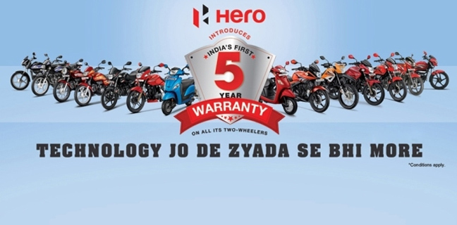 Με έναρξη της παροχής την 1η Μαρτίου 2014, όλα τα scooter και μοτοσυκλέτες της Hero MotoCorp, έχουν εγγύηση με όριο τα 5 χρόνια ή (αν έρθουν νωρίτερα) τα 70.000 χιλιόμετρα για τις μοτοσυκλέτες και τα 50.000 χιλιόμετρα για τα scooter της.