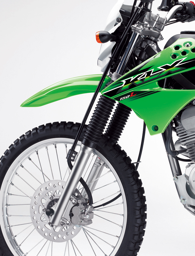 Βασισμένο στην πλατφόρμα του KLX150, το KLX150L έχει καλύτερες επιδόσεις στο χώμα, χάρη στους τροχούς μεγαλύτερης διαμέτρου, οι οποίοι αναβαθμίστηκαν σε 21’’ μπροστά και 18’’ πίσω.