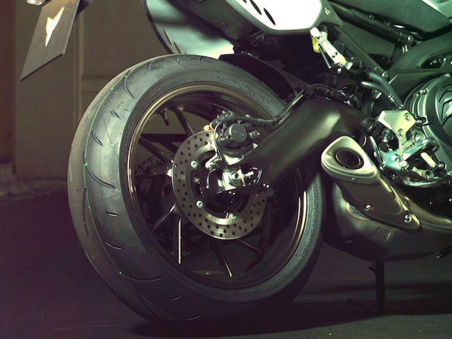 Το νέο Yamaha φορά μια δίχρωμη σέλα, φαρδύτερα μαρσπιέ και έχει μπάρα στο τιμόνι. Η εξάτμιση Akrapovic, που όμως διατίθεται σαν εξτρά, ανηφορίζει μέχρι το πίσω φτερό, προσθέτοντας μια ηχηρή νότα στην μεταμόρφωση.