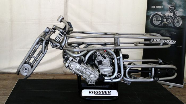 Τον κύριο Fred Bertrand ίσως να τον γνωρίζετε καλύτερα από το καλλιτεχνικό του ψευδώνυμο Krugger. Ο Βέλγος φτιάχνει μοναδικές special μοτοσικλέτες στο εργαστήριό του, αρκετές από τις οποίες σίγουρα έχετε ξαναδεί, όπως για παράδειγμα το Veon που είχε βραβευτεί στο διαγωνισμό customizing της AMD πριν τέσσερα χρόνια.