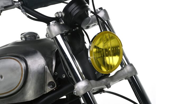 Dario Mastroianni – Officine Mermaid: «Το στιλ του οίκου μας είναι rough and ready, ετοιμοπόλεμο, σπαρτιάτικο και βασικό. Το ονομάσαμε Sratch, υπονοώντας ότι έχει… πέσει, ή έχει πάθει ζημιά. Αυτό προσπαθήσαμε να δείξουμε με το ρεζερβουάρ, από το οποίο αφαιρέσαμε τη βαφή, και το περιποιηθήκαμε στο χέρι. Τα μεταλλικά φτερά τα αφήσαμε άβαφα, και κατόπιν τα βουρτσίσαμε στο χέρι. Αφαιρέσαμε αρκετά πράγματα από τη μοτοσικλέτα, αφήνοντας μόνο τα απαραίτητα. Ακόμα και η εξάτμιση, παρότι προέρχεται από το original, έχει απλοποιηθεί σε απολύτως βασική μορφή. Στο μπροστινό μέρος επιλέξαμε ένα κλασικό πιρούνι με τροχό 21 ιντσών, ενώ πίσω ο τροχός είναι 18άρης. Η σέλα και το προστατευτικό της μπάρας τιμονιού έχουν vintage πράσινο δέρμα, σε στιλ που θυμίζει… γουέστερν! Η μοτοσικλέτα μας έχει ένα κεντρικό προβολέα, αλλά και ένα μικρότερο στο πλάι».