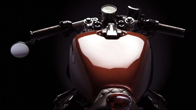 Φυσικά το πλαίσιο βάφτηκε εκ νέου, οι αναρτήσεις δεν αλλάχτηκαν αλλά αναπαλαιώθηκαν στην εντέλεια, ομοίως και τα φρένα. Η προσοχή στη λεπτομέρεια πλησιάζει κλινικά επίπεδα ψυχαναγκασμού όταν συναντάς επιλογές όπως αυτή στην εξάτμιση, όπου τα πάντα χρωμιώθηκαν από την αρχή και στη συνέχεια το μεγαλύτερο μέρος τους καλύφθηκε από πυρίμαχο ύφασμα. Ας μη φαίνεται, από κάτω το χρώμιο μόλις που πρόλαβε να στεγνώσει! Η σέλα φυσικά είναι χειροποίητη, ανάγλυφη και μοναδική, σχεδιασμένη για τη συγκεκριμένη μοτοσυκλέτα, ομοίως και τα γκριπάκια που φτιάχτηκαν με δύο σημεία αναφοράς: να είναι κλασικής εμφάνισης και από το ίδιο υλικό, ασορτί με τη σέλα.