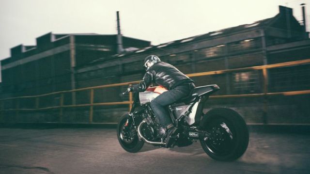 Πίσω η φτιαγμένη στο χέρι κοντή ουρά είναι από carbon, στο χαρακτηριστικό στιλ του JvB, και η σέλα αυστηρά για ένα άτομο. Στην εξάτμιση συναντάμε ένα τελικό της Termignoni για να έχει το τέρας το ουρλιαχτό που του ταιριάζει. Τέλος, η βαφή είναι ρετρό, και βασίζεται στα χρώματα της ομάδας GP της Yamaha του 1985.