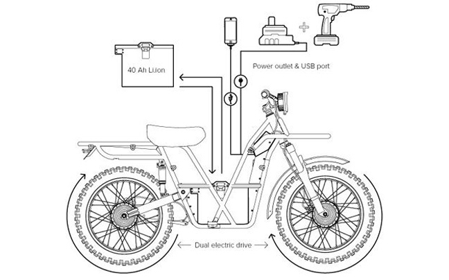Η ενεργειακή του πηγή είναι μια μπαταρία λιθίου-ιόντων 40 Ah, έξυπνα τοποθετημένη χαμηλά στο πλαίσιό του, κρατώντας το κέντρο βάρους πολύ χαμηλά. Οι κατασκευαστές του μας λένε πως θέλει περίπου 4 ώρες φόρτισης σε μια κοινή πρίζα για να αποδώσει αυτονομία της τάξης των 100 χιλιομέτρων σε ανώμαλο έδαφος ή ως και 150 σε πιο βατές διαδρομές.