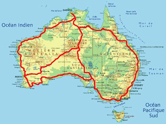 Επιδίωξή του είναι, μετά από ακριβώς 65 ημέρες και 18.500 χιλιόμετρα, να ολοκληρώσει την οδική εξερεύνηση της Αυστραλίας.