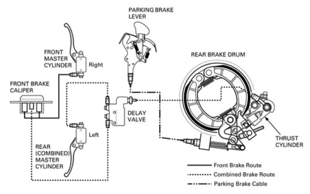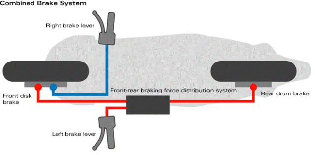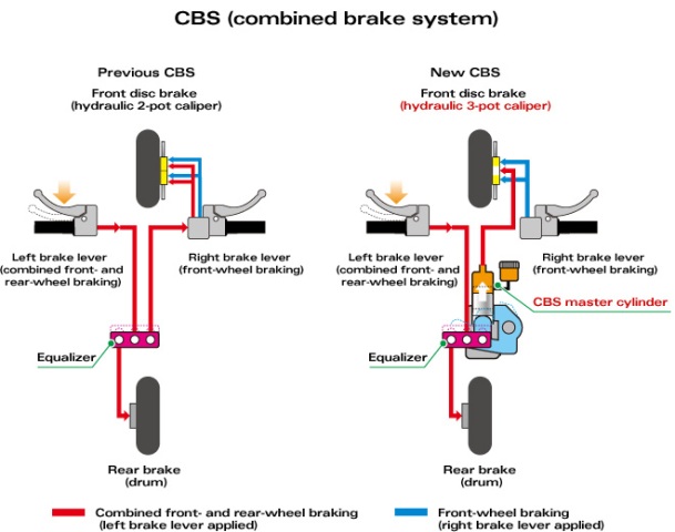 Το σύστημα συνδέει το εμπρός με το πίσω φρένο (μηχανικά), έτσι ώστε και οι δύο τροχοί να συμμετέχουν πάντα στην επιβράδυνση. Στο CBS δεν ελέγχεται η πίεση που ασκείται στις δαγκάνες, πράγμα που θεωρητικά επιτρέπει το μπλοκάρισμα των τροχών –και άρα την απώλεια ελέγχου.