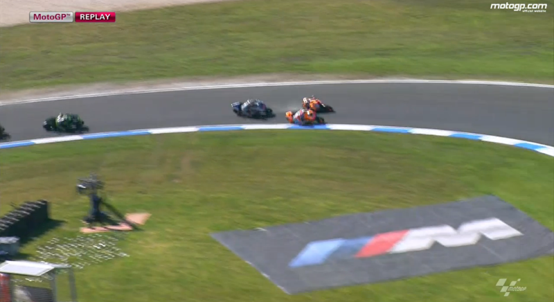 Όσο για το πραγματικό «γιατί» της πτώσης, ο Stoner το εξήγησε. Στο σημείο που πάτησε ο Dani, η άσφαλτος είναι χάλια, δεν έχει πρόσφυση. Του χρόνου θα είναι καλύτερη, αφού προβλέπεται να στρωθεί εκ νέου μέσα στο καλοκαίρι (το αυστραλέζικο…).