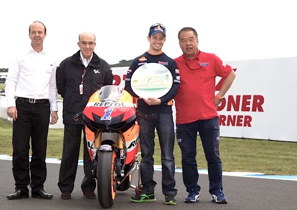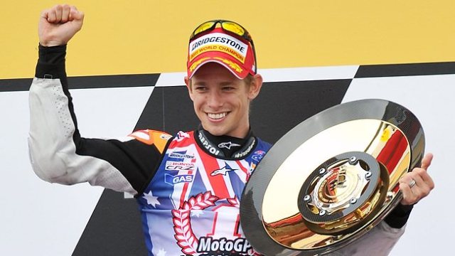 Κατά τη διάρκεια του τελευταίου αγώνα της χρονιάς στη Βαλένθια, για τα επιτεύγματά του ο Casey Stoner τιμήθηκε από τα MotoGP με τον τίτλο «Θρύλος των MotoGP». Τον τίτλο αυτό μοιράζεται με 19 ακόμα μυθικούς και κορυφαίους αναβάτες. O Stoner αγωνίστηκε για πρώτη φορά σε GP σε ηλικία 15 ετών. Τώρα, 12 χρόνια αργότερα ο 27 χρονος Αυστραλός εγκατελείπει τους αγώνες μετά από 45 νίκες, 89 βάθρα και 43 pole! Μπήκε έτσι στο πάνθεον των 20 μεγαλύτερων οδηγών του MotoGP, παρέα με τους: Giacomo Agostini, Mick Doohan, Geoff Duke, Wayne Gardner, Mike Hailwood, Daijiro Kato, Eddie Lawson, Anton Mang, Angel Nieto, Wayne Rainey, Phil Read, Jim Redman, Kenny Roberts, Jarno Saarinen, Kevin Schwantz, Barry Sheene, Freddie Spencer, John Surtees και Carlo Ubbiali. Διαβάστε τις σημαντικότερες στιγμές της λαμπρής 12χρονης καριέρα του στα GP σε τίτλους… Ιούλιος 2001 Μ. Βρετανία – Donington. 125cc – 17ος Ο Casey κάνει το ντεμπούτο του στα GP σαν έκτακτος αναβάτης (wild-card), σε ηλικία 15 ετών. Οκτώβριος 2001 Αυστραλία – Phillip Island. 125cc – 12ος Μόλις στο δεύτερο GP του τερματίζει μέσα στη 15άδα και βαθμολογείται. Αυτή είναι η πρώτη φορά που αγωνίζεται στην πίστα της πατρίδας του. Μάιος 2002 Ισπανία – Jerez. 250cc – 6ος Τρίτη του εκκίνηση σαν κανονικός αναβάτης των GP250 και τερματίζει 6ος. Γίνεται ο νεότερος αναβάτης στην Ιστορία που τερματίζει στην εξάδα της μεσαίας κατηγορίας. Ιούλιος 2003 Γερμανία – Sachsenring. 125cc – 2ος Η δεύτερη θέση στο γερμανικό GP τού δίνει τον τίτλο του νεότερου Αυστραλού που ανέβηκε ποτέ σε βάθρο GP. Κράτησε το ρεκόρ αυτό μέχρι το φετινό αγώνα Moto3 της Αυστραλίας, οπότε τού το πήρε ο Θανάσης Σίσσης. Νοέμβριος 2003 Ισπανία – Valencia. 125cc – 1ος Η πρώτη του νίκη σε GP. Είναι πλέον ο νεότερος Αυστραλός στην ιστορία που κερδίζει GP. Οκτώβριος 2004 Μαλαισία – Sepang. 125cc – 1ος Φέρνει στην ΚΤΜ την πρώτη νίκη της ιστορίας της σε GP. Απρίλιος 2005 Πορτογαλία – Estoril. 250cc – 1ος Ανεβαίνει στα 250 και κερδίζει στο δεύτερο αγώνα της σαιζόν. Γίνεται έτσι ο νεότερος Αυστραλός που κερδίζει GP στη μεσαία κατηγορία. Οκτώβριος 2005 Τουρκία – Κωνσταντινούπολη. 250cc – 1ος Κερδίζει για πέμπτη φορά μέσα στο ’05. Τελικά θα καταλάβει τη 2η θέση της βαθμολογίας. Μάρτιος 2006 Ισπανία – Jerez. MotoGP – 6ος Ντεμπούτο στα MotoGP και έκτη θέση από τα αποδυτήρια, οδηγώντας την Honda της ομάδας LCR. Απρίλιος 2006 Κατάρ – Losail. MotoGP – 5ος Παίρνει την pole, στο δεύτερο μόλις αγώνα του στη μεγάλη κατηγορία. Γίνεται έτσι ο δεύτερος νεότερος αναβάτης που ξεκινά από την pole position στη μεγάλη κατηγορία. Ο μόνος που το έχει καταφέρει σε νεότερη ηλικία, είναι ο Freddie Spencer. Απρίλιος 2006 Τουρκία – Κωνσταντινούπολη. MotoGP – 2ος Τρίτος του αγώνας στα MotoGP και καταφέρνει να τερματίσει 2ος, πίσω από τον Melandri. Γίνεται ο νεότερος αυστραλός αναβάτης που ανεβαίνει στο βάθρο της μεγάλης κατηγορίας. Μάρτιος 2007 Κατάρ – Losail. MotoGP – 1ος Κερδίζει τον πρώτο αγώνα του με την Ducati. Είναι πλέον ο νεότερος Αυστραλός που κερδίζει στη μεγάλη κατηγορία και επίσης ο νεότερος στην ιστορία που έχει κάνει νίκες σε όλες τις κατηγορίες, GP125, GP250 και MotoGP. Ιούνιος 2007 Ιταλία – Mugello. MotoGP – 4ος Παίρνει την pole position για πρώτη φορά με την Ducati. Ιούλιος 2007 Ισπανία – Barcelona. MotoGP – 1ος Με τη νίκη του στην Βαρκελώνη ο Stoner γίνεται ο πρώτος αναβάτης στην ιστορία που κάνει 4 νίκες με Ducati μέσα στην ίδια χρονιά. Ιούλιος 2007 ΗΠΑ – Laguna Seca. MotoGP – 1ος Παίρνει την pole και μετά κερδίζει, έχοντας κάνει ταχύτερο χρόνο σε όλες τις δοκιμαστικές περιόδους, ελεύθερες και χρονομετρημένες. Γίνεται έτσι ο πρώτος μη Αμερικανός που κερδίζει στη Laguna Seca, επί εποχής MotoGP. Σεπτέμβριος 2007 Σαν Μαρίνο – Misano. MotoGP – 1ος Κερδίζει 3 διαδο