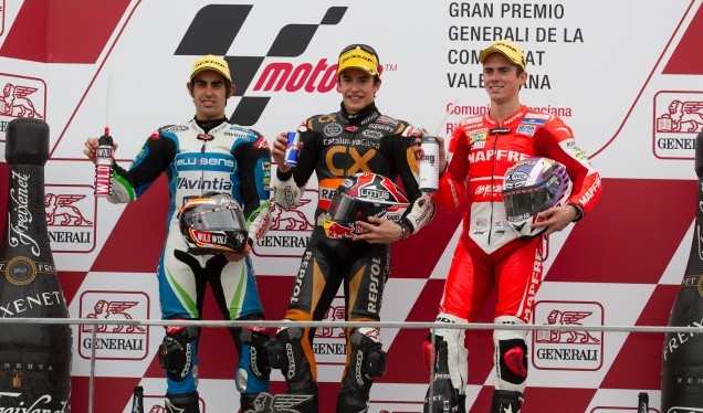 Ο Simón και ο Terol ανέβηκαν τελικά στο βάθρο που είχε ιδιαίτερη σημασία και για τον Terol καθώς ήταν το πρώτο στην καριέρα του στην μεσαία κατηγορία. Ακολούθησαν οι Lüthi και Aegerter που μάχονταν ως το τέλος και πιο πίσω ο Torres χωρίς ανταγωνισμό στην 6η θέση που είναι και η καλύτερη της καριέρας του.