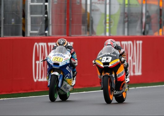 Ο Márquez και ο Rea συνέχισαν τη μανιώδη μονομαχία τους, μέχρι που ακούμπησαν οι μοτοσυκλέτες τους και ο Márquez έχασε τη γραμμή του μένοντας οριακά στο δρόμο. Αυτό μάλλον πείσμωσε τον Márquez που πέρασε αμέσως όχι μόνο το Rea, αλλά και τον Aegerter που ήταν λίγο πιο μπροστά. Αυτά έγιναν στην ευθεία της πίστας και στα όρια της αθλητικής άμιλλας, που υποχρέωσαν τον Ισπανό να σηκώσει το χέρι ζητώντας συγγνώμη.