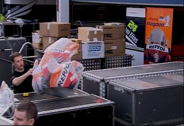 Ακόμη, σε κάθε αγώνα ταξιδεύει εξοπλισμός βάρους 260-270 τόνων. Σε αυτόν περιλαμβάνονται οι μοτοσυκλέτες και ο εξοπλισμός των ομάδων (180 τόνοι), ο τηλεοπτικός εξοπλισμός της Dorna (50 τόνοι), υλικό προώθησης και διαφημίσεων (23 τόνοι) και εξοπλισμός χρονομετρήσεων (7 τόνοι).