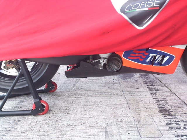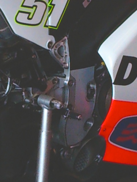 Το τελικό του εμπρός ζεύγους κυλίνδρων έχει αλλάξει θέση και από την αριστερή πλευρά βγαίνει τώρα δεξιά, κάτω από το φέρινγκ. Επίσης ο εγκάρσιος άξονας στον οποίο στηρίζεται η πισω ανάρτηση έχει μετακινηθεί προς τα εμπρός, ενώ αλλαγές έχει δεχτεί και το πλαίσιο χαμηλά, προφανώς αλλάζοντας τη στρεπτική ακαμψία της περιοχής. Αυτό υπονοεί η παρουσία της λευκής χαρτοταινίας που καλύπτει πρόχειρα τις αλλαγές από τα βλέμματα των περιέργων.