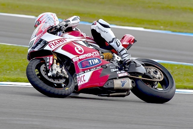 Ο Ιταλός που συμμετέχει στο βρετανικό πρωτάθλημα Superbike, έτρεξε μόνον και μόνον για να συγκεντρώσει πολύτιμα δεδομένα που χρειάζεται επειγόντως για να εξελιχτεί η Panigale, κάτι για το οποίο η Ducati πλήρωσε ευχαρίστως τα 20.000 ευρώ της συμμετοχής. Ο Carlos Checa αποφάσισε να μη τρέξει στο Β’ Σκέλος, καθώς έκρινε πως ο ώμος του επιβαρύνθηκε πολύ από τον πρωινό αγώνα.