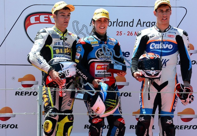Πρόκειται για τη Maria Herrera της ομάδας (SPA-KTM) που τερμάτισε πρώτη και με πολύ πειστικό τρόπο, ενώ πίσω της οι νεαροί Jorge Navarro (SPA-Mir Racing) και Alejandro Medina (SPA-KTM) έδωσαν σκληρή μάχη μέχρις εσχάτων για τη 2η θέση.