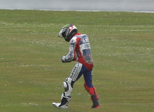 Ο εργοστασιακός οδηγός της Yamaha έπεσε μετά από ένα γλίστρημα στη γρήγορη δεξιά στροφή Hoge Heide του Assen. H βρεγμένη πίστα κατά τη διάρκεια των απογευματινών δοκιμών δυσκόλεψε τους οδηγούς με σημαντικότερο θύμα το Lorenzo.