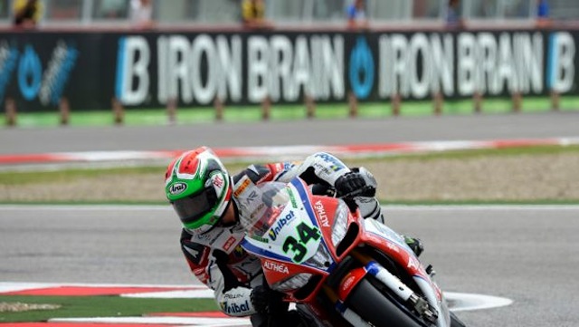 Δίπλα τους στην πρώτη γραμμή ξεκινά ο Davide Giugliano της δορυφορικής Althea Aprilia, που απέδειξε τη λατρεία του για την Imola, ντροπιάζοντας τους εργοστασιακούς της Aprilia, Sylvain Guintoli και Eugene Laverty –οι οποίοι ξεκινούν δίπλα-δίπλα από τη 2η σειρά.